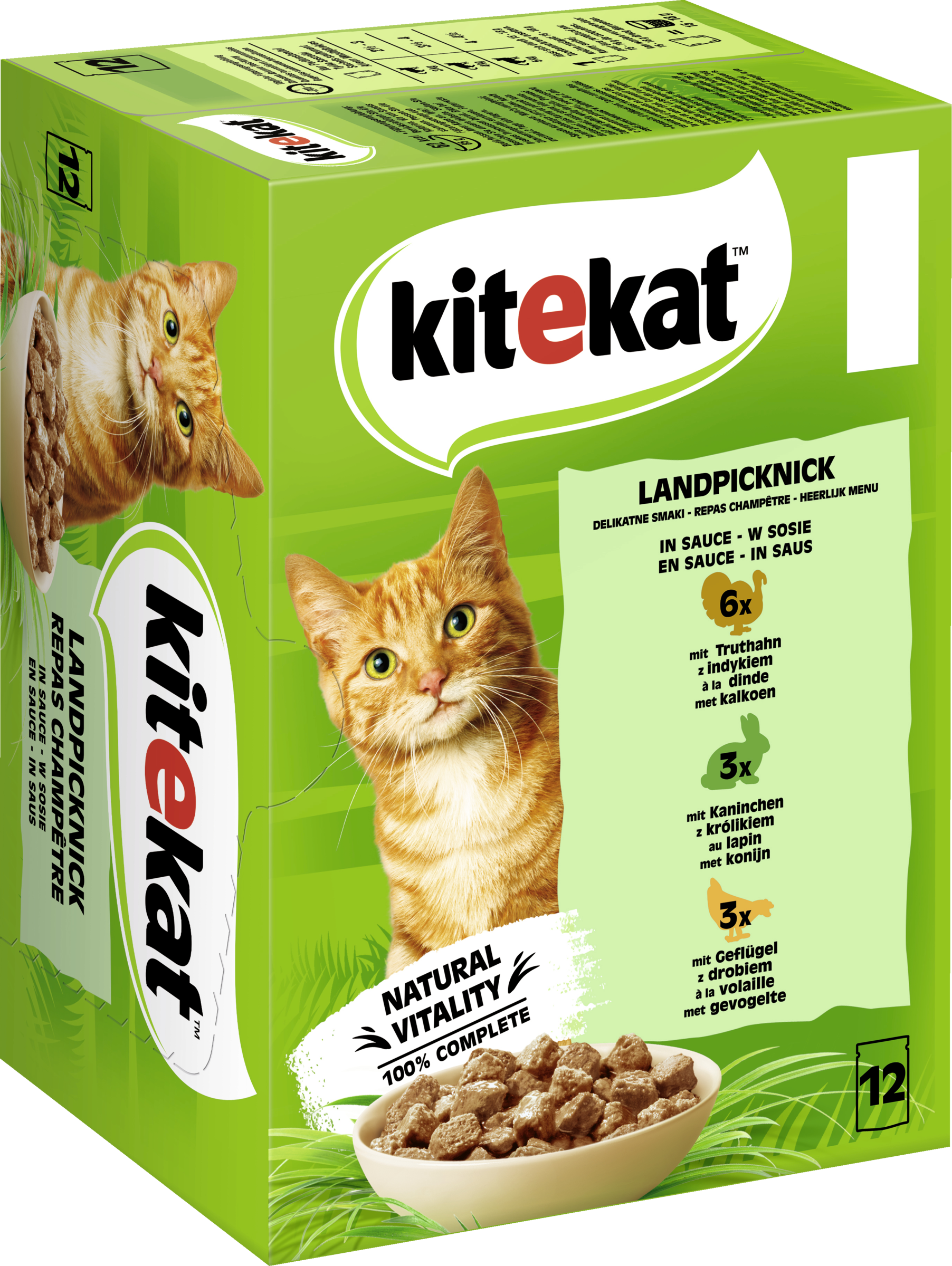 KITEKAT™ stillt den Appetit Ihrer Katze auf Leben. Mit Stücken und hochwertigen Zutaten liefert es alle wichtigen Nährstoffe und Vitamine, damit Ihre Katze das Leben in vollen Zügen genießen kann. KITEKAT™ Landpicknick enthält leckere Rezepte mit Truthahn, Kaninchen und Geflügel.