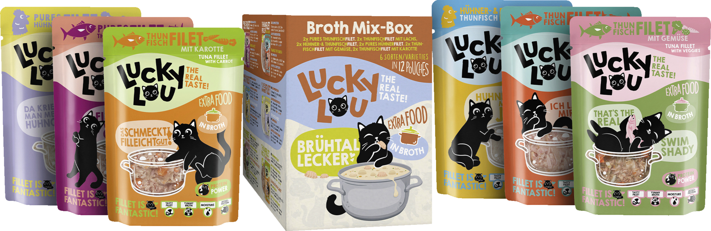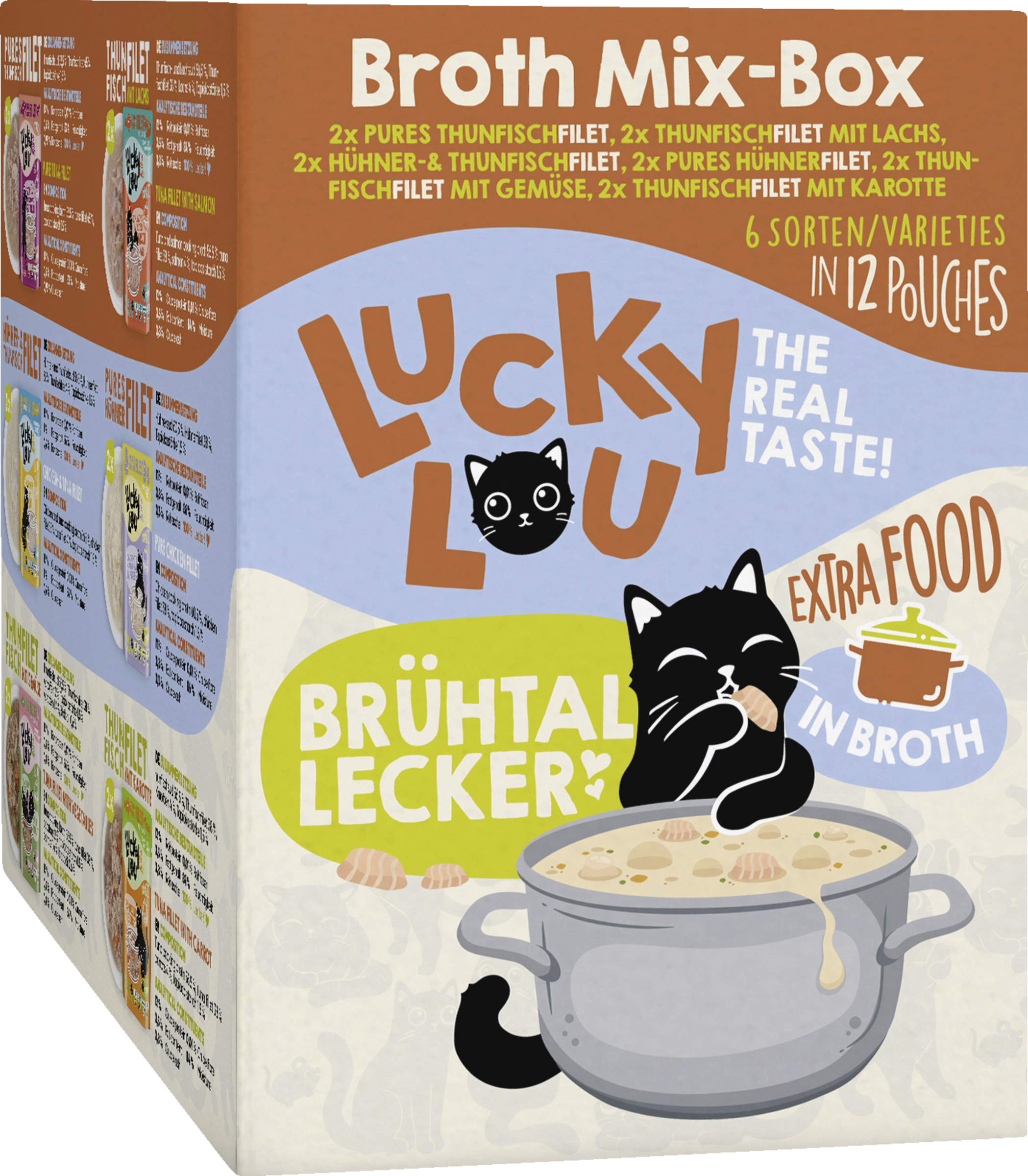 Die Lucky Lou® Extrafood Broth-Mix-Box 12 x 70g beinhaltet: