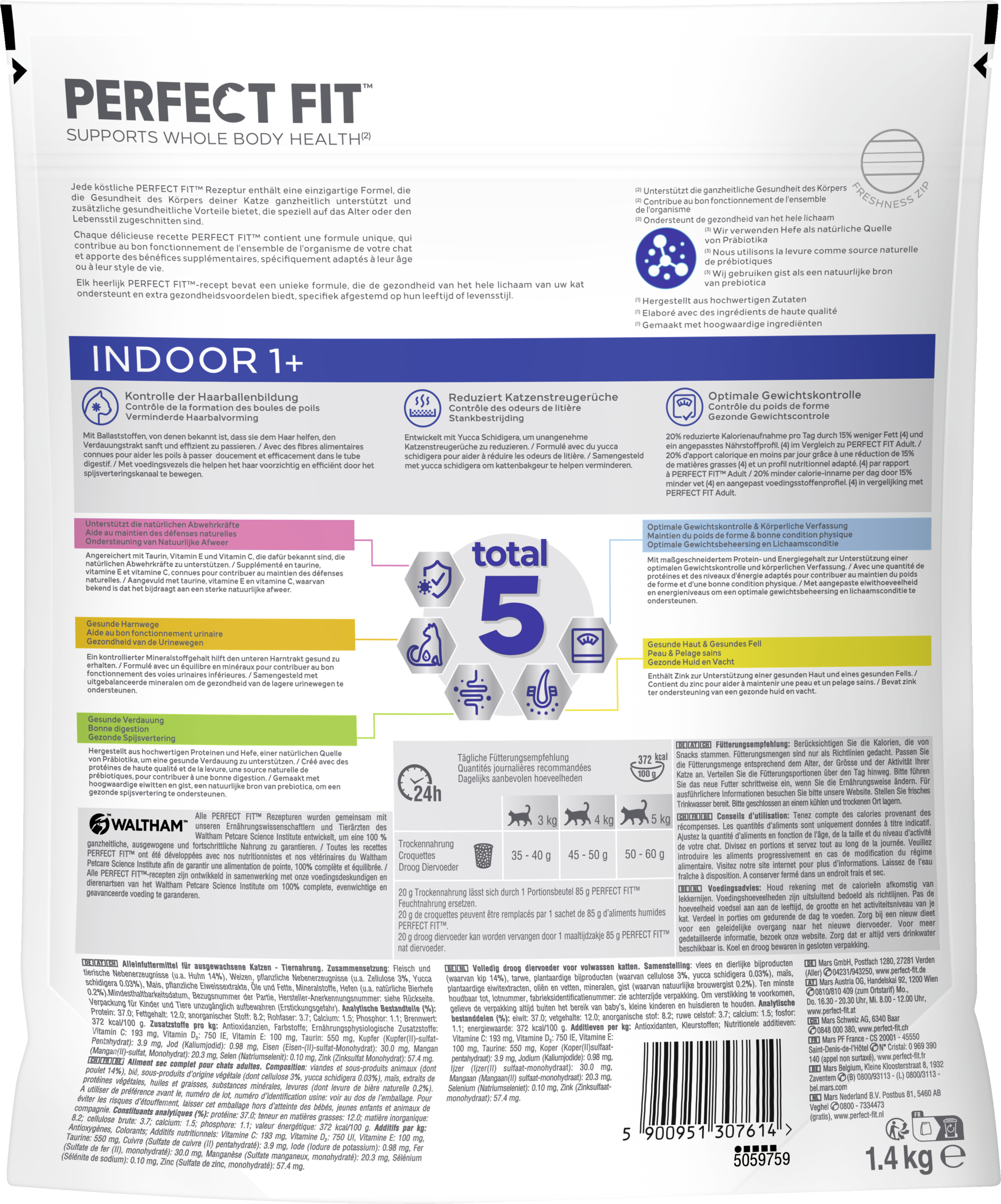 Fütterungsempfehlung: 20 g Trockennahrung lässt sich durch 1 Portionsbeutel 85 g PERFECT FIT™ Feuchtnahrung ersetzen. Berücksichtigen Sie die Kalorien, die von Snacks stammen. Fütterungsmengen sind nur als Richtlinien gedacht. Passen Sie die Fütterungsmenge entsprechend dem Alter, der Grösse und der Aktivität Ihrer Katze an. Verteilen Sie die Fütterungsportionen über den Tag hinweg. Bitte führen Sie das neue Futter schrittweise ein, wenn Sie die Ernährungsweise ändern. Für ausführlichere Informationen besuchen Sie bitte unsere Website. Stellen Sie frisches Trinkwasser bereit.