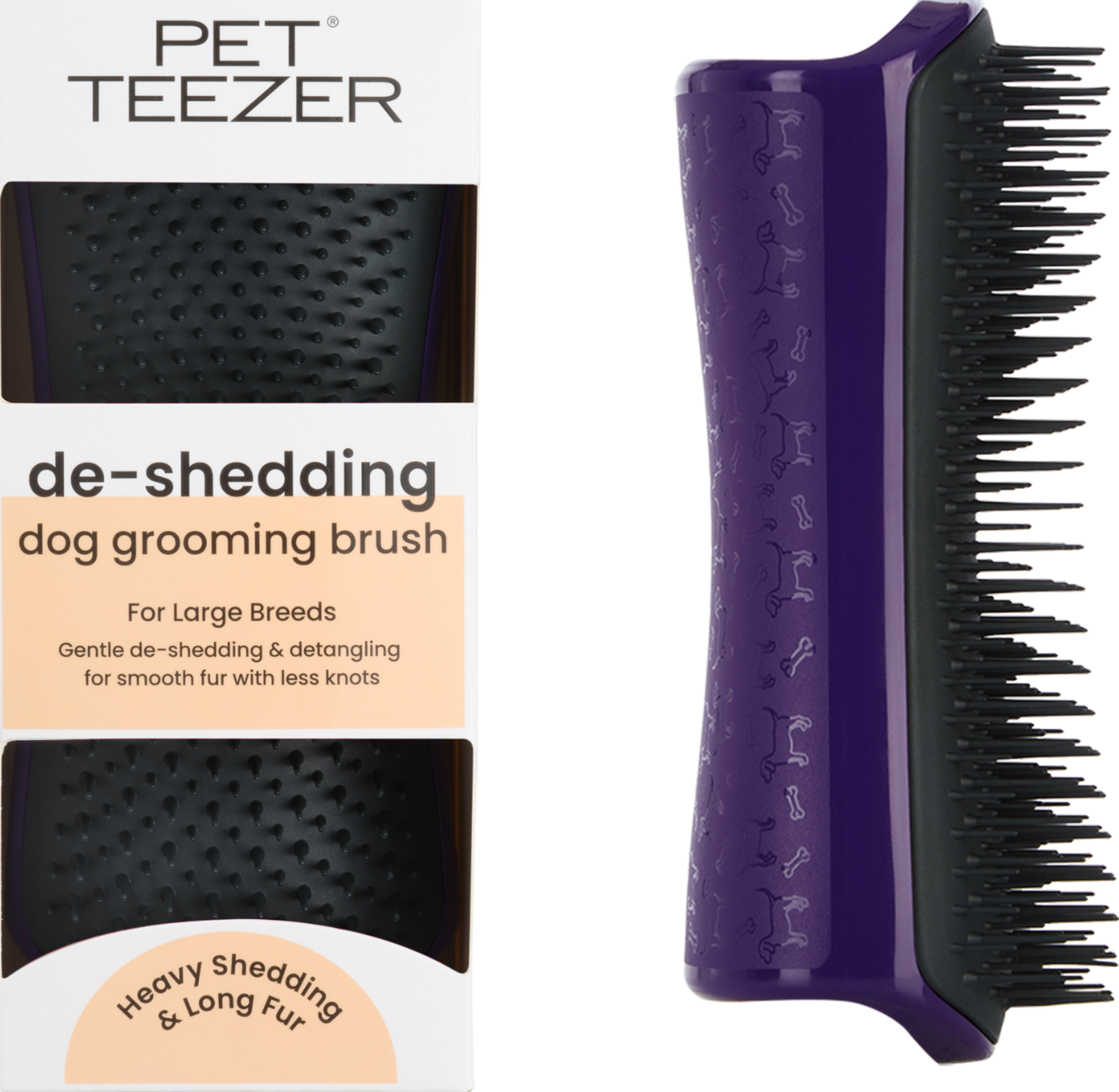 Die Pet Teezer De-shedding Bürste ist ideal zur Enthaarung von jedem Hund und Felltyp geeignet. Die Bürste für unsere vierbeinigen Freunde überzeugt mit seinem zweistufigen Borsten-System. Die längeren Borsten entfernen sanft Dreck und erreichen das Unterfell. Die kürzeren Borsten nehmen loses Haar auf und entfernen selbst dickeres Fell. Dabei minimieren die Polymer Borsten beim Enthaaren das Risiko von Verbrennungen durch Bürsten. Dank seiner ergonimischen Form liegt er besonders gut in der Hand und sorgt für einen hohen Komfort beim Bürsten. 82% würden ihre existierende Hundebürste gegen einen Pet Teezer austauschen.