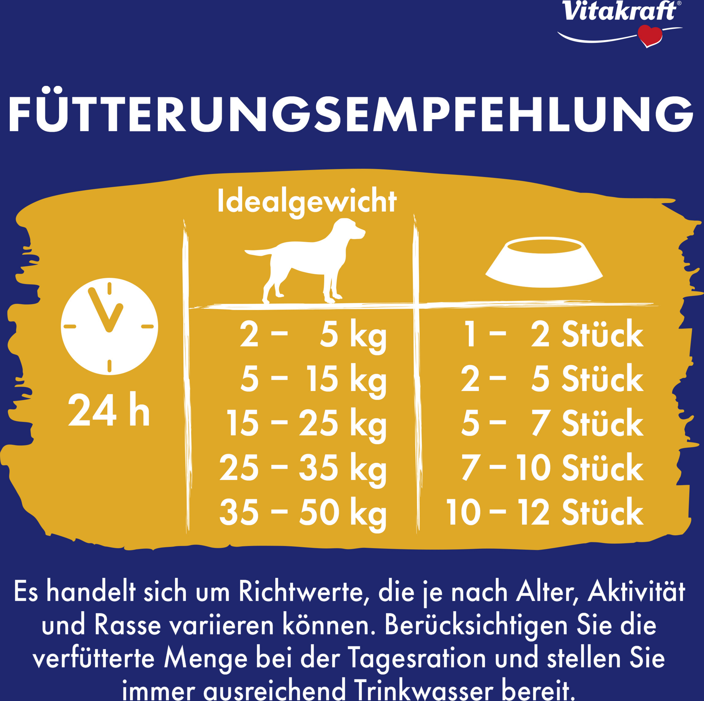 - 35-50 kg: 10-12 Stück/Tag