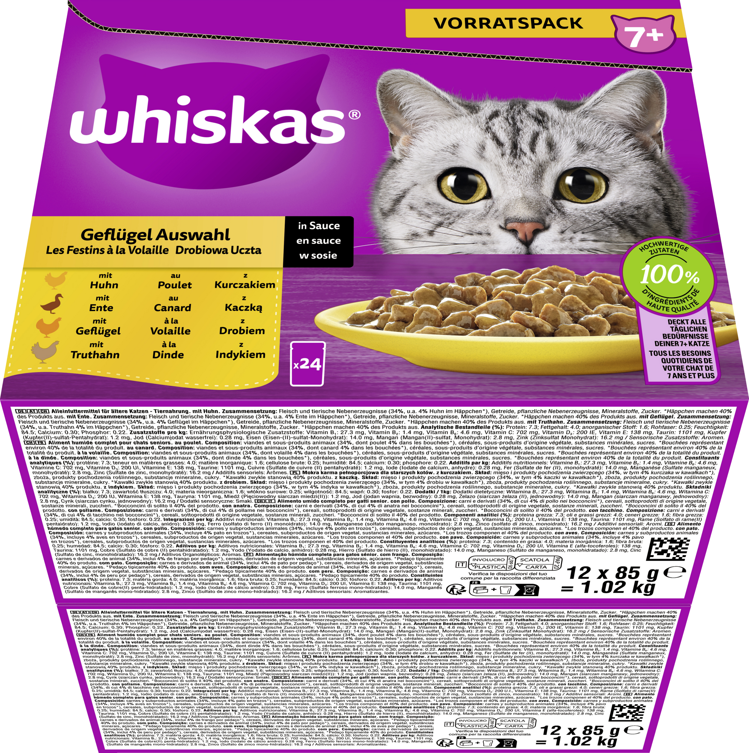 - jede köstliche Rezeptur enthält 100% hochwertige Zutaten und deckt alle täglichen Bedürfnisse deiner 7+ Katze