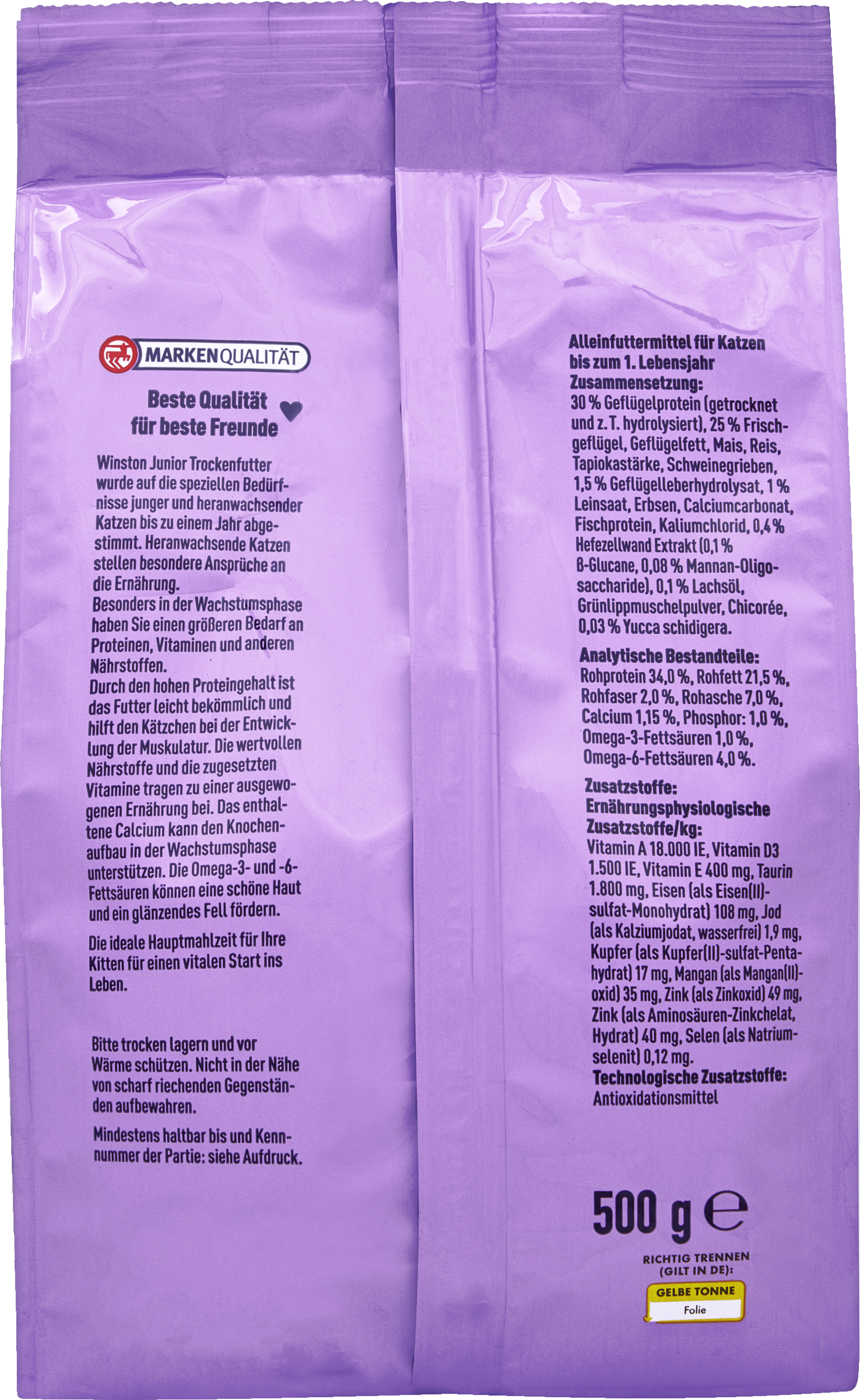Winston Junior Trockenfutter wurde auf die speziellen Bedürfnisse junger und heranwachsender Katzen bis zu einem Jahr abgestimmt. Heranwachsende Katzen stellen besondere Ansprüche an die Ernährung.