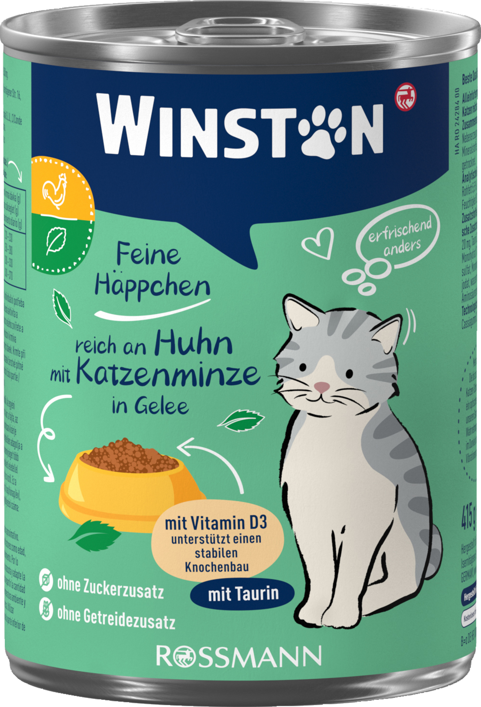 Winston Schlemmer-Menü wurde nach neuesten wissenschaftlichen Erkenntnissen entwickelt und speziell auf die Ernährungsbedürfnisse Ihrer Katze abgestimmt. Es wird aus ausgesuchten Rohstoffen hergestellt und enthält so wichtige Nähr- und Aufbaustoffe in besonders schmackhafter Qualität.