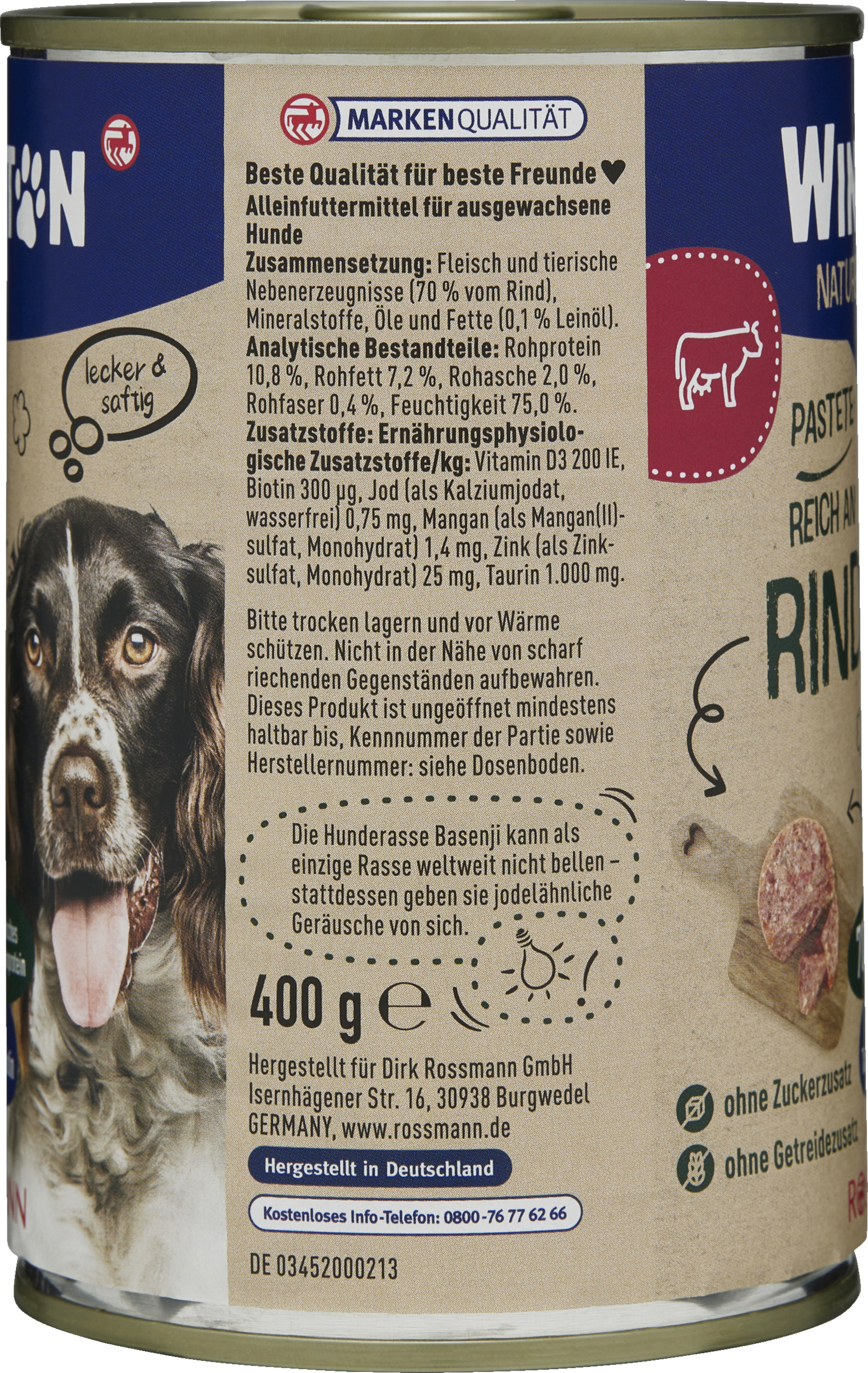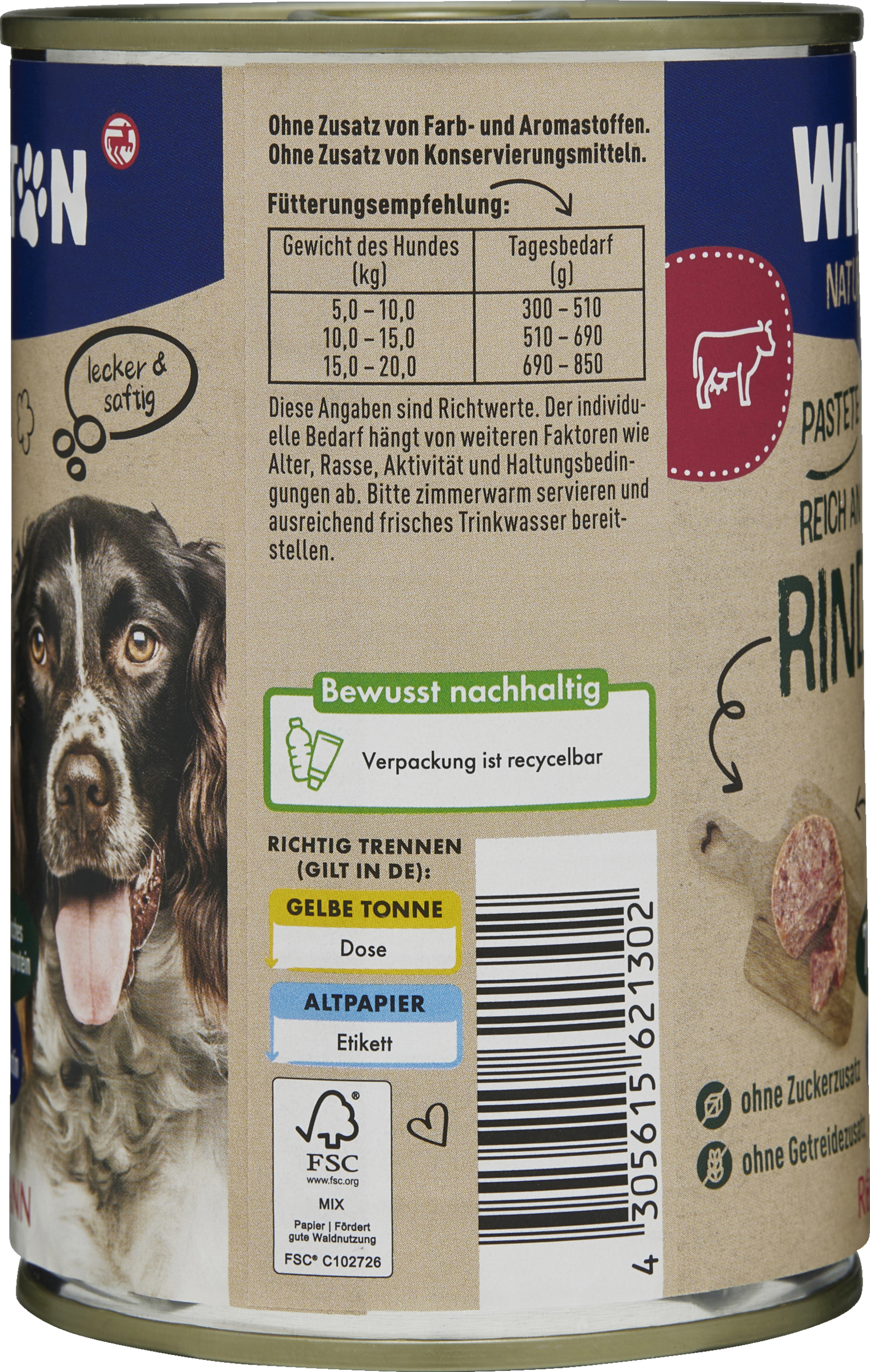 Diese Angaben sind Richtwerte. Der individuelle Bedarf hängt von weiteren Faktoren wie Alter, Rasse, Aktivität und Haltungsbedingungen ab. Bitte zimmerwarm servieren und stets frisches Trinkwasser bereitstellen.