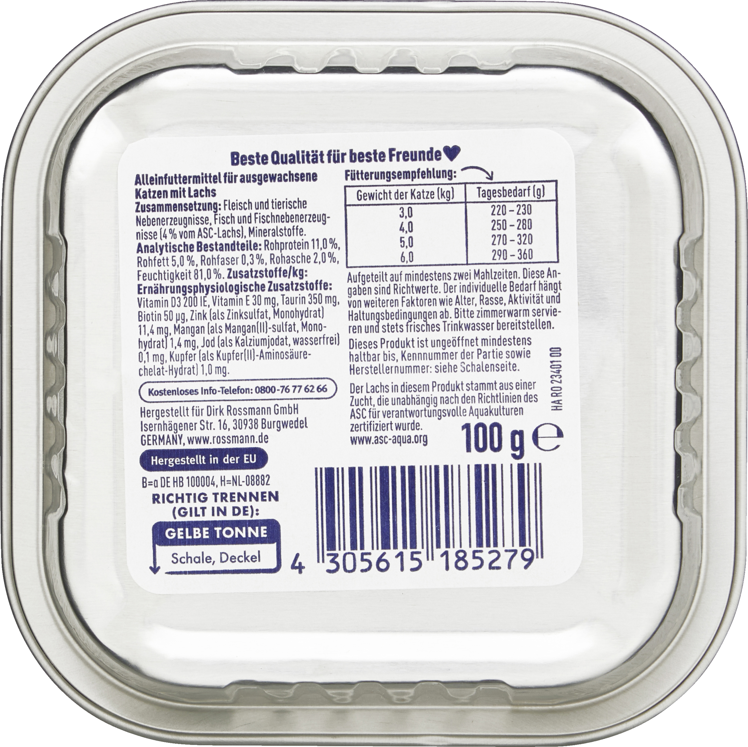 Fleisch und tierische Nebenerzeugnisse, Fisch und Fischnebenerzeugnisse (4% vom Lachs), Mineralstoffe.